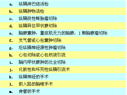 胸腔鏡同樣可以進行胸腺囊腫,重癥肌無力的胸腺,I期胸腺瘤切除術以及縱隔良性畸胎瘤,縱隔異位甲狀腺,胸內甲狀腺腫切除術。