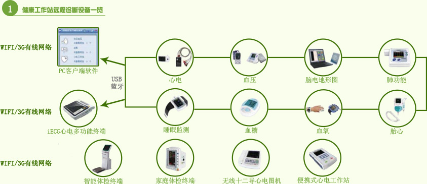 村鎮級工作站以鄉村醫生、藥店為對象,收取平臺及健康檢測設備使用費,提供健康管理一體機、中醫亞健康檢測儀和CTT斷層檢測儀、遠程12導心電圖機等工作站標準配置 。